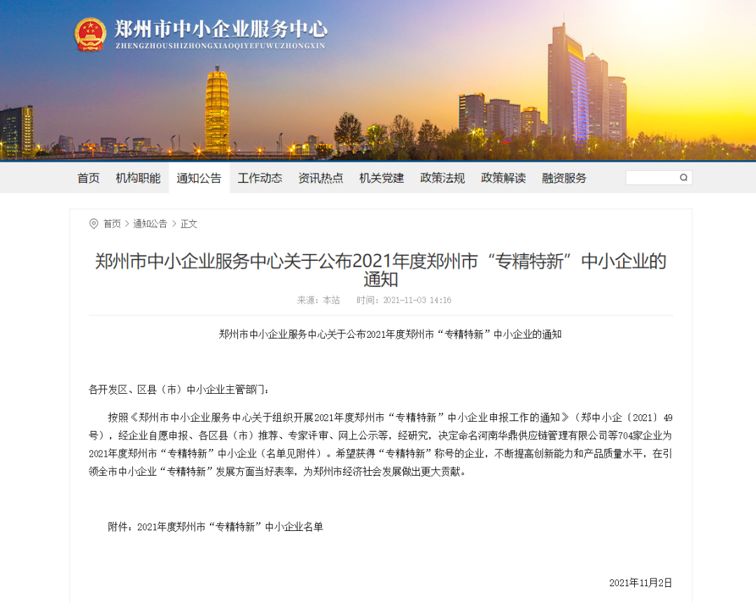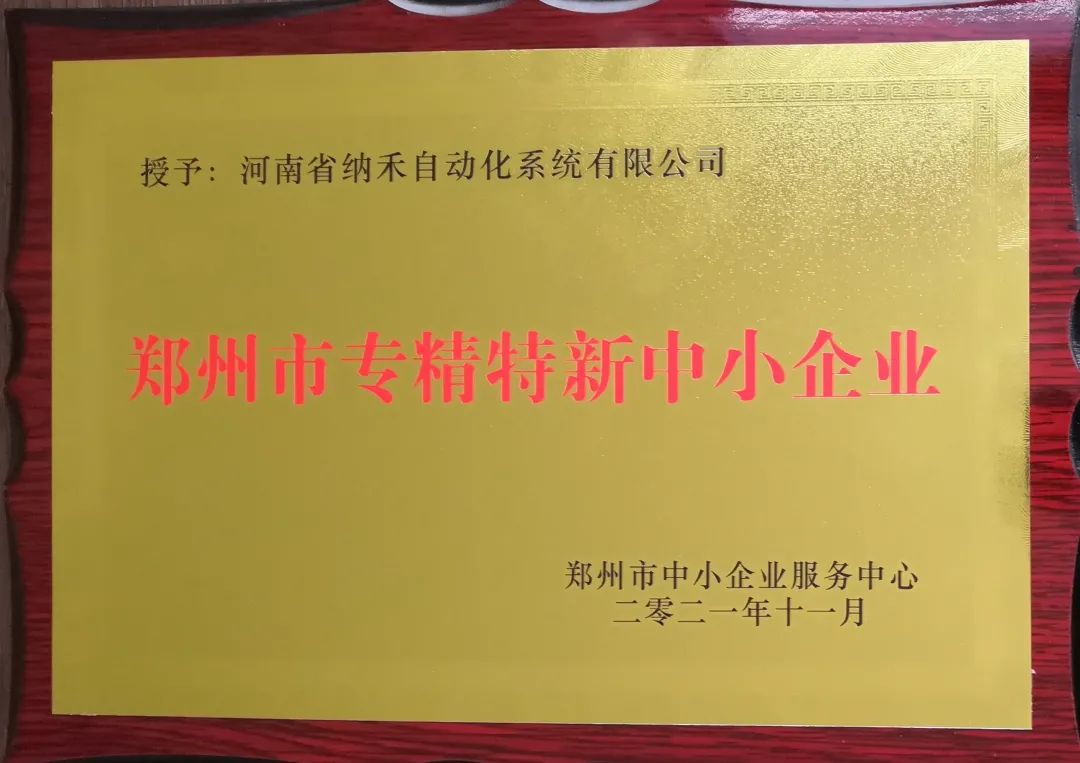 喜訊(xùn)!納(nà)禾自動化成功獲評2021年度鄭州市“專精特新”中小企業