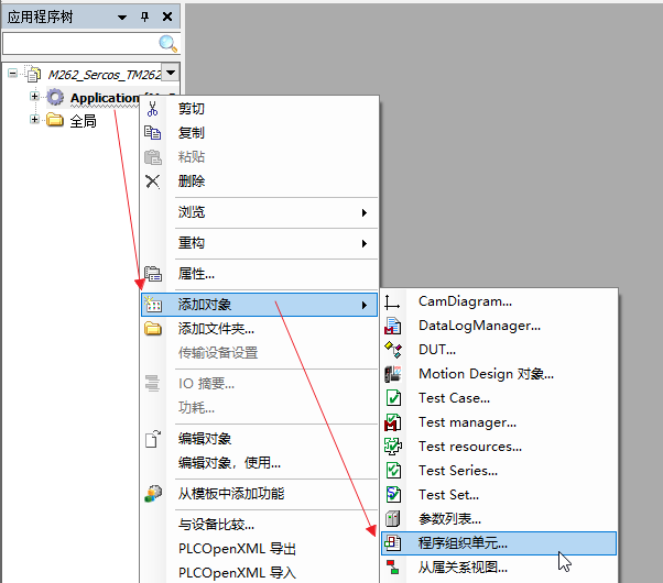 打開EcoStruxure軟件,單擊【應用程序樹】→【Application】,選(xuǎn)擇程序組(zǔ)織(zhī)單元,如圖(tú)3所示(shì)。